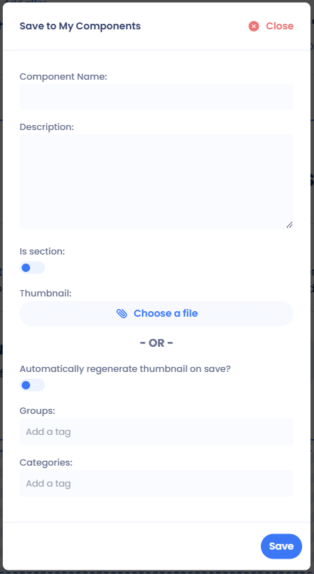 When using the page builder, you might find there are some components you are working on that can be reusable. You can opt to save that component to be reused later on a different section or page. To save a specific project component: